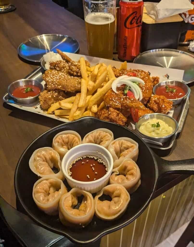 • Korean food menu – fried chicken, dumplings, ramen, kimchi, etc.