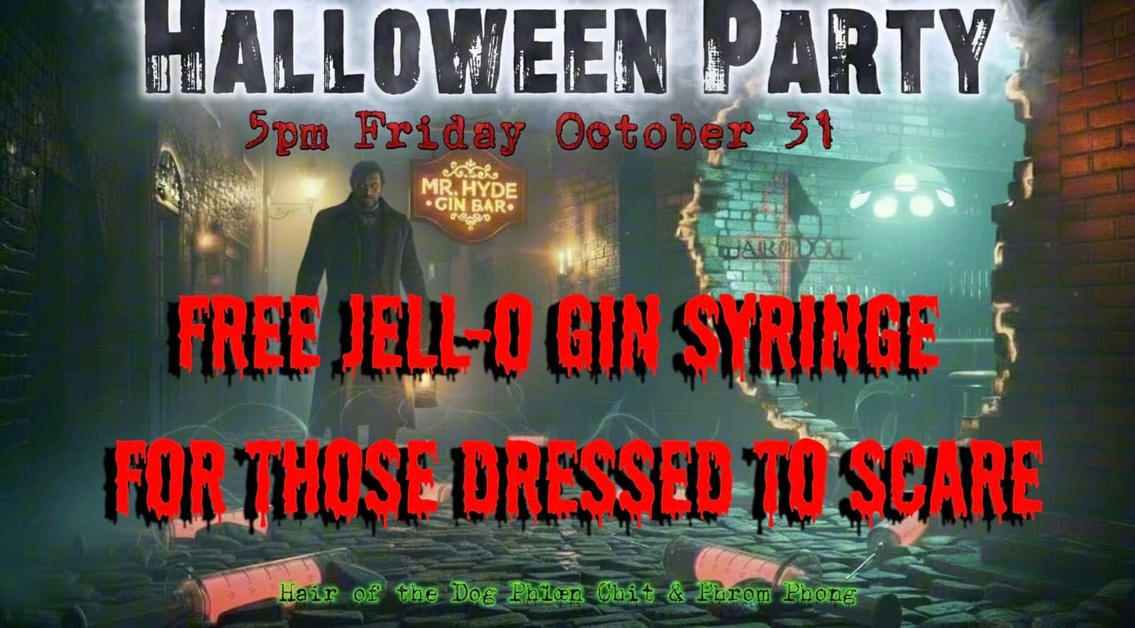 • FREE JELL-O GIN SYRINGE for those dressed to scare (costumes)