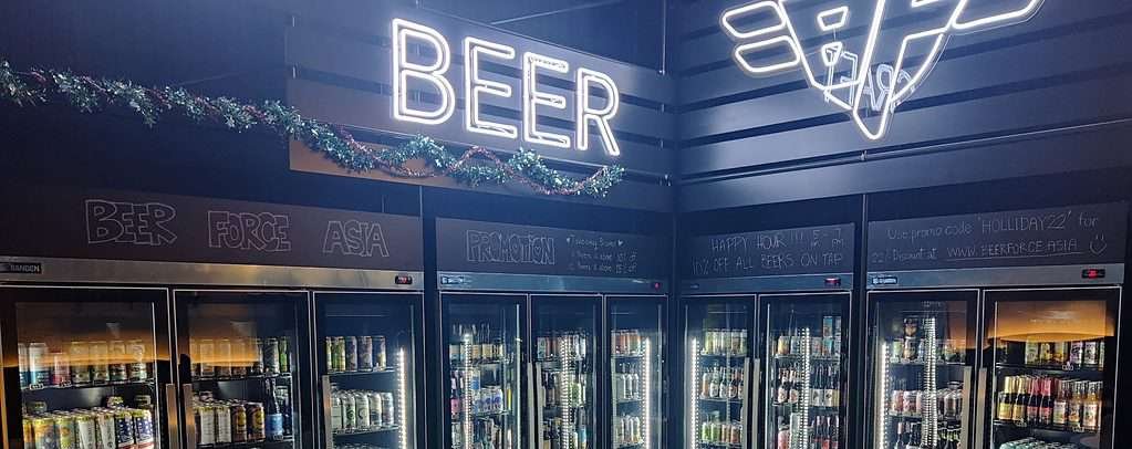 A small craft beer bar with 6 taps and a beer fridge on N. Sathon road, near Lumphini Park in central Bangkok.